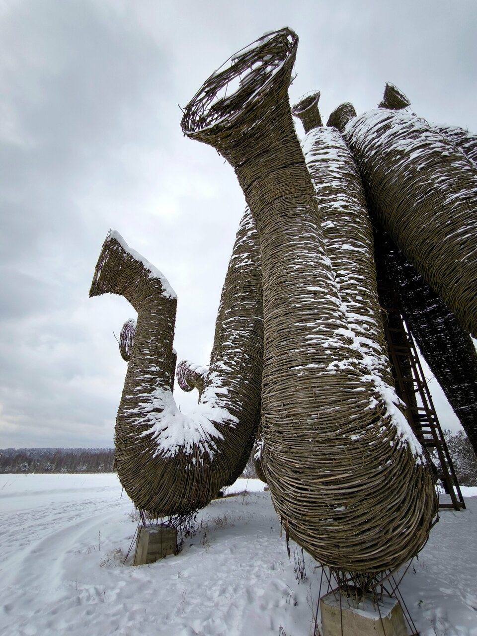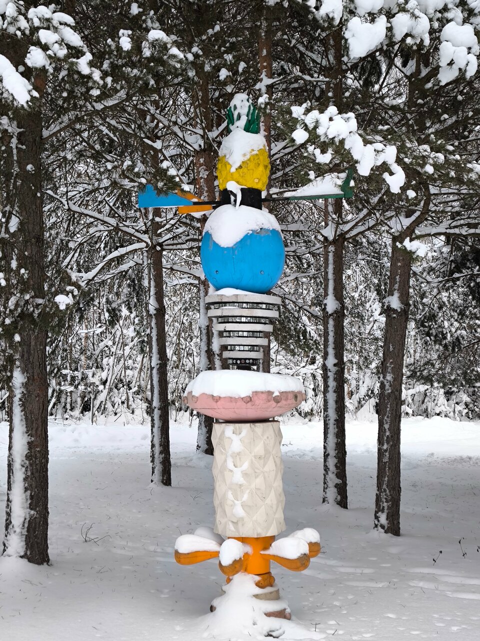 Все арт-объекты созданы из натуральных материалов — дерева, коры, шишек, веток — в полном соответствии с философией бережного отношения к природе. Среди них — культовые работы вроде «Бельведера», «Маяка», «Жар-птицы» и «Дома над лесом».